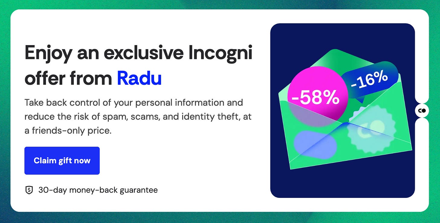 Incogni automates the tedious process of removing your personal information from data broker websites. Instead of spending hundreds of hours manually contacting companies selling your data, Incogni handles removal requests to 180+ data brokers for you. They're the first service to pass a Deloitte audit of their removal processes, and in my 2-year test, they removed my information from 700+ websites. Progress takes 6-12 months, but it beats tackling data brokers yourself. Start with their basic plan for a full year.